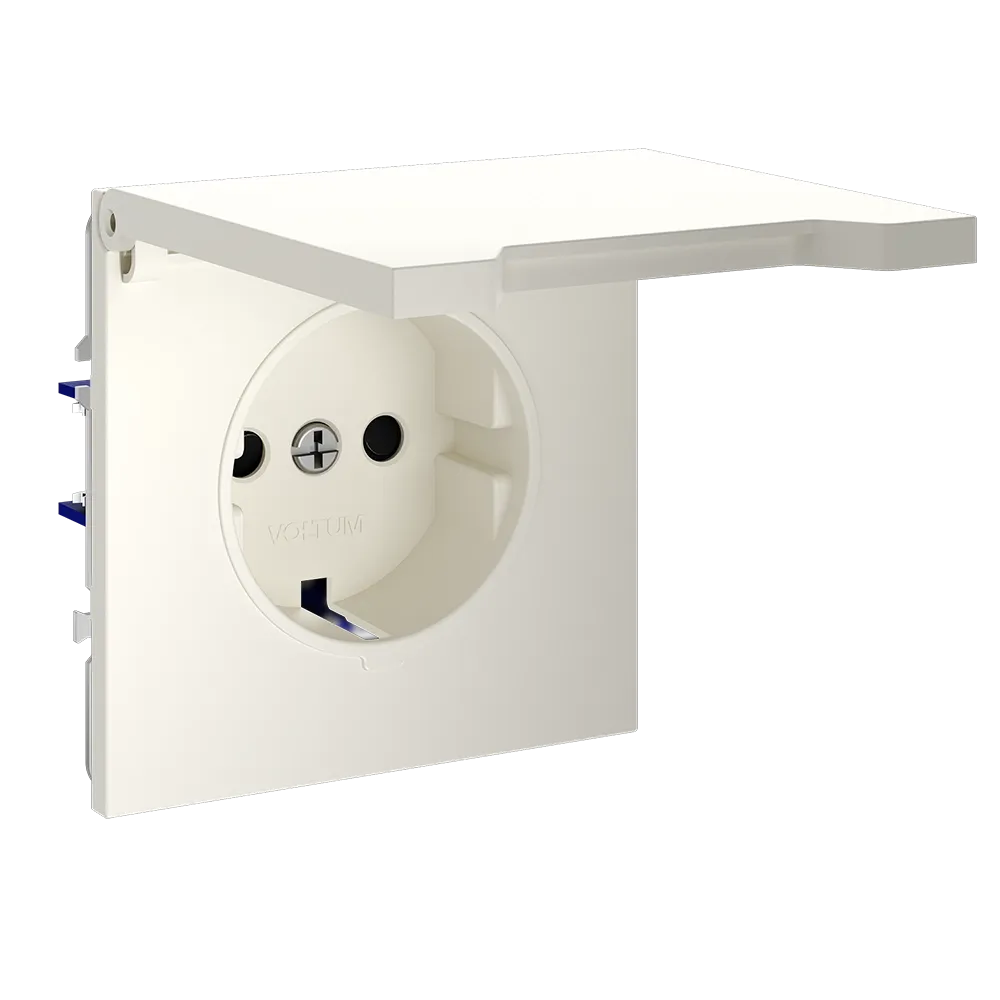 Розетка VOLTUM S70 с заземлением и защитными шторками и откидной крышкой  — это решение максимальной безопасности и эстетики для современного интерьера. Идеально подходит для детских комнат, ванных, прихожих, кухонь и уличных зон под навесом, где важна защита от пыли, брызг и случайного контакта с токоведущими частями.